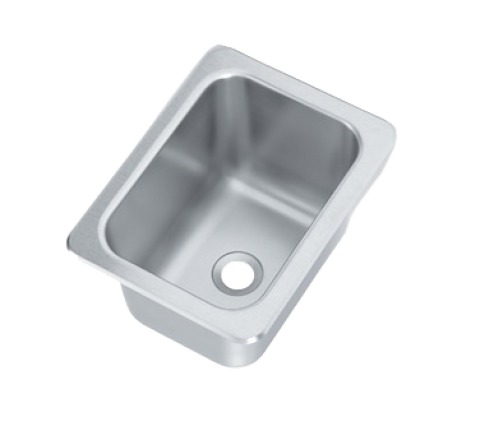 Drop-In Sink, one compartment, 10"W x 14" front-to-back x 10" deep compartment, self-rimming, 2" drain, (4) stud mounts with mounting brackets included, 20/304 stainless steel one-piece, drawn construction, 13"W x 17"D (overall), Made in USA (Refer to vollrathfoodservice.com for full warranty policy)