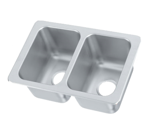 Drop-In Sink, two compartment, 10"W x 14" front-to-back x 10" deep compartments, self-rimming, 3-1/2" drains, (8) stud mounts with mounting brackets included, 20/304 stainless steel one-piece drawn construction, 25"W x 17"D (overall), Made in USA (Refer to vollrathfoodservice.com for full warranty policy)