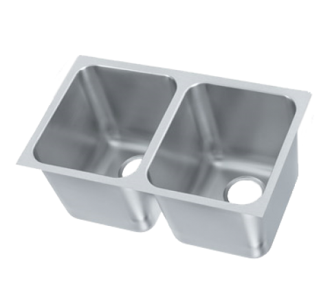 Weld-In / Undermount Sink, two compartment, 14"W x 12"D x 12" deep, 3-1/2" drain, 1" flange, square corners, not self-rimming or undercoated, super heavy weight 18 gauge stainless steel, Made in USA (does not include frame) (Refer to vollrathfoodservice.com for full warranty policy)