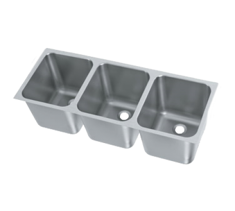 Weld-In / Undermount Sink, three compartment, 14"W x 12"D x 12" deep, 2" drain, 1" flange, square corners, not self-rimming or undercoated, super heavy weight 18 gauge stainless steel, Made in USA (does not include frame) (Refer to vollrathfoodservice.com for full warranty policy)