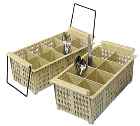 Traex® Flatware Basket, half-size, (8) compartment, with handles, 16-7/8"W x 8-1/8"D x 5-7/8"H (compartment size 3-1/2"W x 3-1/2"D x 4-1/4"H), co-polymer plastic, beige, NSF, Made in USA (Refer to vollrathfoodservice.com for full warranty policy)