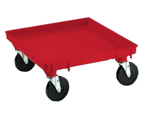 Rack-Master® Dolly Base, platform design, no handle, single-stack, copolymer construction, 5" casters, 21" x 21", red, accommodates up to 350 lbs. (Refer to vollrathfoodservice.com for full warranty policy)