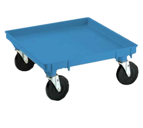 Rack-Master® Dolly Base, platform design, no handle, single-stack, copolymer construction, 5" casters, 21" x 21", blue, accommodates up to 350 lbs. (Refer to vollrathfoodservice.com for full warranty policy)