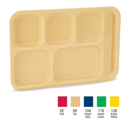 School Compartment Tray, rectangular,13-3/4"W x 9-3/4"D, right hand, ABS, resistant to breakage & scratching, dishwasher safe, stackable, tan, NSF (Refer to vollrathfoodservice.com for full warranty policy)