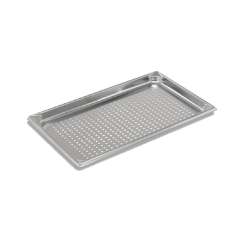 Super Pan V® Food Pan, perforated bottom, full size, 1-1/4" deep, 22 gauge, 300 series stainless steel, anti-jamming design with reinforced pour corners, NSF, Made in USA (Refer to vollrathfoodservice.com for full warranty policy)