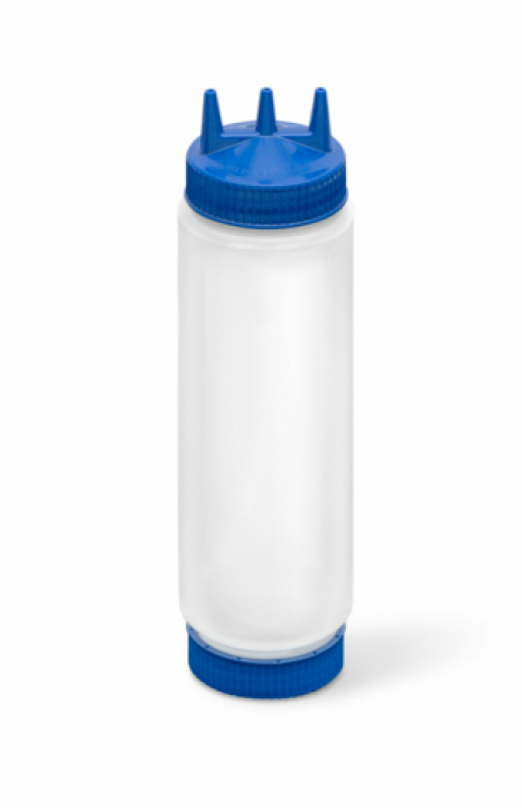 Traex® FIFO Tri Tip™ Squeeze Bottle Dispenser, 24 oz., triple tip, clear bottle with blue tip and base cap (Refer to vollrathfoodservice.com for full warranty policy)