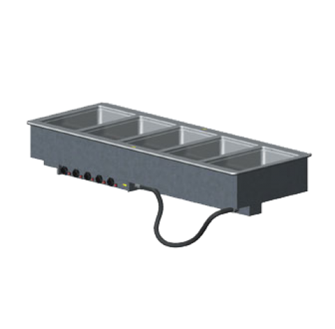 Hot Food Well Unit, Drop-In, electric, (5) 12" x 20" individual 20 gauge stainless steel insulated wells, 68"W x 26"D x 21-1/2"H (overall), wet operation only, auto-fill, individual thermostatic controls mounted in panel with cord, power indicator light, drip-free flange, 1" copper manifold drain with individual well shutoffs & manifold shutoff, 18 gauge stainless steel top, 18 gauge galvanized exterior housing, includes positioning clips, 3125 watts, 208v/60/1-ph, 15.0 amps, cord with NEMA 6-20P, NSF, cULus, Made in USA (67-1/4"W x 25-1/4"D cutout size, requires 7/8" corner radius) (Refer to vollrathfoodservice.com for full warranty policy)