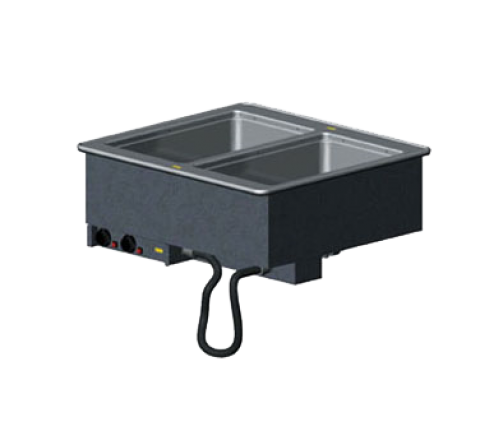 Hot Food Well Unit, Drop-In, electric, (2) 12" x 20" individual 20 gauge stainless steel insulated wells, 28-1/4"W x 26"D x 21-1/2"H (overall), wet operation only, auto-fill, individual infinite controls mounted in panel with cord, power indicator light, drip-free flange, 1" copper manifold drain with individual well shutoffs & manifold shutoff, 18 gauge stainless steel top, 18 gauge galvanized exterior housing, includes positioning clips, 1250 watts, 240v/60/1-ph, 5.2 amps, cord with NEMA 6-15P, NSF, cULus, Made in USA (27-1/2"W x 25-1/4"D cutout size, requires 7/8" corner radius) (Refer to vollrathfoodservice.com for full warranty policy)