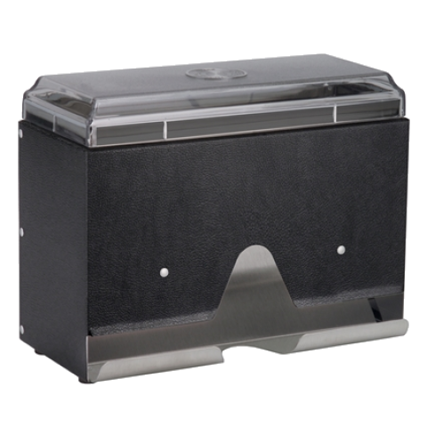 Straw Boss® Jr. Dispenser, wrapped, single-sided, 200 capacity, 9"L x 4"W x 7"H, heavy gauge metal housing with plastic lid & dispensing bar, straw dia. .275"-.310", straw length 7-1/2" - 8-3/4", black (Refer to vollrathfoodservice.com for full warranty policy)