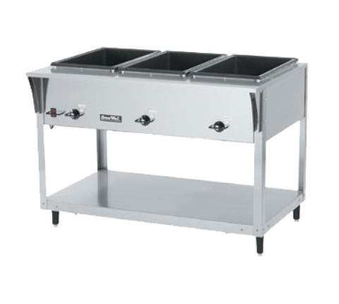 ServeWell® SL-Hot Food Table, (3) well, 46"W x 29-1/2"D x 34"H, individually controlled Thermoset fiber-reinforced resin wells equipped with drains, inside mounted elements, low-water indicator light, undershelf, 300 series stainless steel construction, adjustable legs, 480 watts per well (1440 watts total), 12 amps, 10' cord with NEMA 5-15P, 120v/60/1-ph, cULus, NSF, Made in USA, KD , made to order, cannot be cancelled or returned (Refer to vollrathfoodservice.com for full warranty policy)