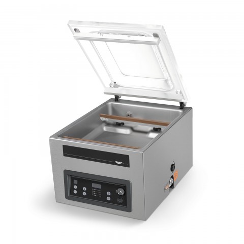 Model VP16 Large In-chamber Vacuum Pack Machine, 18-7/8"W x 20-3/4"D x 18"H overall, (16-13/16"W x 16-1/2"D x 5"H chamber size), (2) 16" removable seal bars, accommodates bags up to 16", set vacuum to desired time control or sensor control (% pressure) (10) programs, liquid control & soft air option, features Busch pump, 120v/60/1-ph, 13 amp, cord with NEMA 5-20P, 2 year warranty, cETLus, ETL-Sanitation (Refer to vollrathfoodservice.com for full warranty policy)