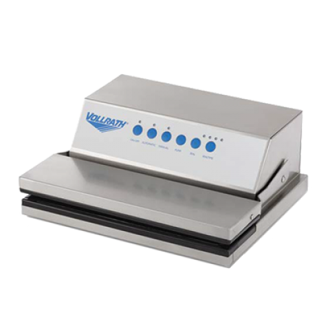 Out-of-Chamber Vacuum Pack Machine, table model, 14-3/4"W x 11-11/16"D x 5-11/16"H, sealing bar length 12-3/16", suitable for dry products (not suitable for use with liquids), 120v/60/1-ph, 380 watts, 3.3 amps, cord with NEMA 5-15P, stainless steel construction, cETLus, ETL-Sanitation, (junior) imported (for use with 40812, 40813, & 40814 vacuum pack bags (100) bags per pack) (Refer to vollrathfoodservice.com for full warranty policy)