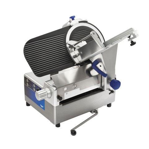 Automatic Slicer, heavy duty, 35° gravity feed, 12" blade with safe removal system, 22-5/8"W x 29-5/8D x 24-7/8"H, belt drive, slice thickness up to 1", kickstand, QuanTanium® coated non-stick plate, anodized aluminum body, non-skid rubber feet, 3/4 HP, 120v/60/1-ph, 4.0 amps, cord with NEMA 5-15P, cULus, UL EPH Classified, UL-Sanitation, model# SLP300EA/S (Refer to vollrathfoodservice.com for full warranty policy)