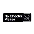 No Checks Please Sign, 3" x 9", white on black, Made in USA (Refer to vollrathfoodservice.com for full warranty policy)