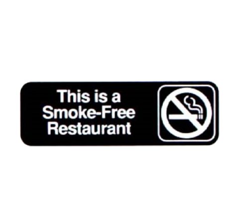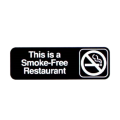 This is a Smoke-Free Restaurant Sign, 3" x 9", white on black, Made in USA (Refer to vollrathfoodservice.com for full warranty policy)
