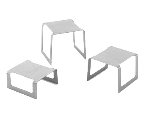Square Buffet Stand, Set of three bent risers, brushed stainless Steel, set contains (1) Large 8" x 8" x 8", (1) Medium 8" x 7-1/2" x 6", & (1) Small 8" x 7" x 4", other colors available, imported (Refer to vollrathfoodservice.com for full warranty policy)