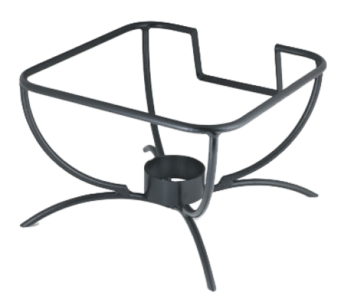 Intrigue® Stand for Induction Chafers, allows square Induction Chafers to be used as traditional chafers, durable heavy duty stand with black powder coat semi-gloss finish, requires (1) fuel cup (46864) or universal chafer heater (46060) sold separately, lifetime warranty on welds (Refer to vollrathfoodservice.com for full warranty policy)