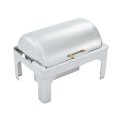 New York, New York® Chafer, 9 quart, rectangular, 18/8 stainless steel, mirror finish with brass accent, incl rack, dome channeled removable cover, dripless waterpan, SPV food pan & (2) fuel holders, 3-position dome cover, 25" x 17-1/2" x 18-1/2", imported (Refer to vollrathfoodservice.com for full warranty policy)