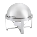 Avenger® Economy Chafer, roll-top, round, 6.0 quart, 18/8 stainless steel, mirror-finish, fully-retractable, 90° & fully open, windguard, stainless steel cover handles (optional high temperature nylon Kool-Touch® cover handles-ordered separately), uses standard fuel holder, includes rack, cover, waterpan, food pan, (1) fuel cup, 18-1/2" x 18", (1) year warranty, imported (Refer to vollrathfoodservice.com for full warranty policy)
