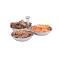 Condiment Server, (3) compartment, single bowl capacity, 4 oz. (.12L) 18/8 stainless steel, mirror finish handles & inside bowl, satin finish bottom & exterior, hollow rod handle, each comp, diameter 3-7/8"(9.8cm), 1" depth, 3-1/4"(8.3cm) overall height, imported (Refer to vollrathfoodservice.com for full warranty policy)