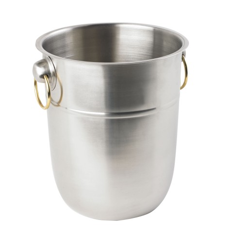 Wine Bucket, 8 quart, stainless with brass ring handles, 8-3/4" top dia., 6" bottom dia., imported (Refer to vollrathfoodservice.com for full warranty policy)