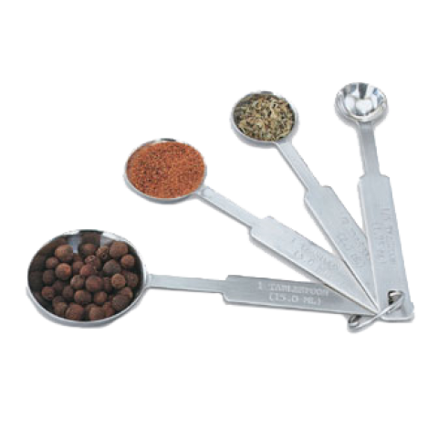 Measuring Spoon Set, four-piece, 18-8 stainless, capacities stamped in teaspoons & milliliters, set contains; 1-tbl., 1-tsp., 1/2-tsp., 1/4-tsp., packaged in individual blister pack, imported (Refer to vollrathfoodservice.com for full warranty policy)
