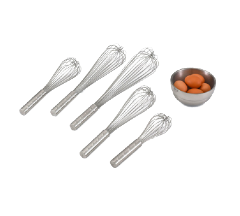 Piano Whip, 14" long, all stainless steel construction, handle length 3", patented handle offers textured "comfort nubs" for sure grip, welded wires with reinforced center wire, NSF, imported (Refer to vollrathfoodservice.com for full warranty policy)