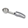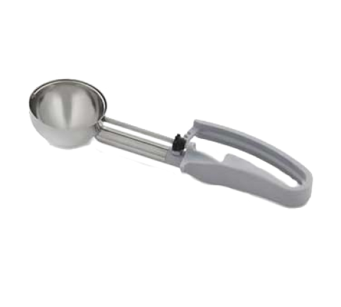 Disher, extended length, 3.7 oz., size 8, 2-7/8" dia., one-piece, two-part construction, stainless steel scoop & shaft, gray color-coded 7-3/4" long ergonomic plastic handle, designed for left or right-handed users, not recommended for use with ice cream or hard products, NSF (Refer to vollrathfoodservice.com for full warranty policy)