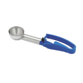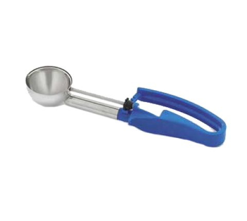 Disher, extended length, 2 oz., size 16, 2-1/4" dia., one-piece, two-part construction, stainless steel scoop & shaft, royal blue color-coded 7-3/4" long ergonomic plastic handle, designed for left or right-handed users, not recommended for use with ice cream or hard products, NSF (Refer to vollrathfoodservice.com for full warranty policy)