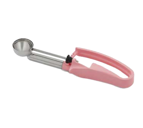 Disher, extended length, .54 oz., size 60, 1-3/8" dia., one-piece, two-part construction, stainless steel scoop & shaft, pink color-coded 7-3/4" long ergonomic plastic handle, designed for left or right-handed users, not recommended for use with ice cream or hard products, NSF (Refer to vollrathfoodservice.com for full warranty policy)
