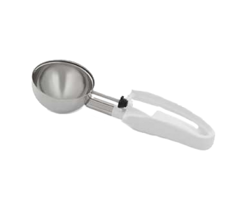 Disher, standard length, 4.7 oz., size 6, 3" dia., one-piece, two-part construction, stainless steel scoop & shaft, white color-coded 6-5/8" long ergonomic plastic handle, designed for left or right-handed users, not recommended for use with ice cream or hard products, NSF (Refer to vollrathfoodservice.com for full warranty policy)