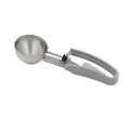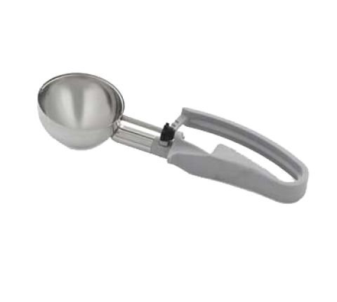 Disher, standard length, 3.7 oz., size 8, 2-7/8" dia., one-piece, two-part construction, stainless steel scoop & shaft, gray color-coded 6-3/8" long ergonomic plastic handle, designed for left or right-handed users, not recommended for use with ice cream or hard products, NSF (Refer to vollrathfoodservice.com for full warranty policy)
