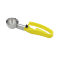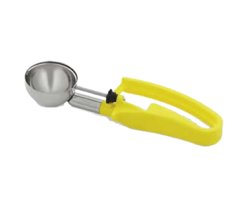Disher, standard length, 1.8 oz., size 20, 2-1/4" dia., one-piece, two-part construction, stainless steel scoop & shaft, yellow color-coded 6-1/2" long ergonomic plastic handle, designed for left or right-handed users, not recommended for use with ice cream or hard products, NSF (Refer to vollrathfoodservice.com for full warranty policy)