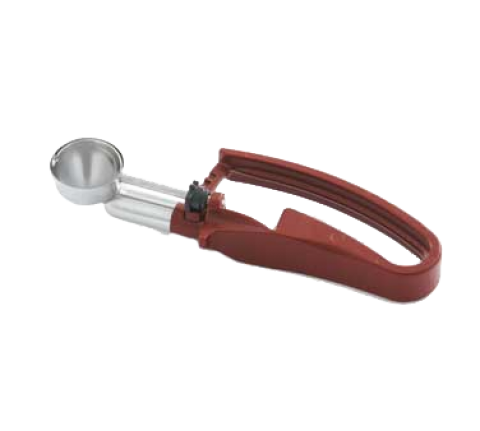 Disher, standard length, .47 oz., size 70, 1-1/4" dia., one-piece, two-part construction, stainless steel scoop & shaft, plum color-coded 6-1/2" long ergonomic plastic handle, designed for left or right-handed users, not recommended for use with ice cream or hard products, NSF (Refer to vollrathfoodservice.com for full warranty policy)
