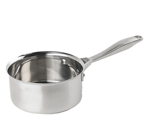 Intrigue® Stainless Steel Sauce Pan, 2-1/4 quart (2.1L), inside diameter 7-1/6", inside depth 3-3/8", 18-8 stainless steel body, with 1/4" thick aluminum & stainless steel clad bottom, ergonomic hollow handle, combination satin/mirror finish, induction ready, NSF, Jacob's Pride® Collection, Limited Lifetime Warranty (Refer to vollrathfoodservice.com for full warranty policy)