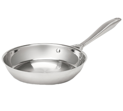 Intrigue® Stainless Steel Fry Pans with Natural Finish, 9-3/8" (24cm) inside diameter, 1-3/4 inside depth, 18-8 stainless steel body, with 1/4" thick aluminum & stainless steel clad bottom, ergonomic hollow handle, combination natural/mirror finish, induction ready, NSF, Jacob's Pride® Collection, Limited Lifetime Warranty (Refer to vollrathfoodservice.com for full warranty policy)