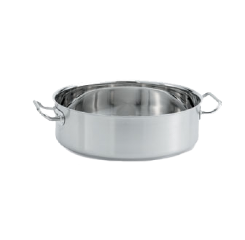 Intrigue® Brazier/Casserole, 12 quart (11.4L), 18/8 stainless steel body, 1/4" aluminum & stainless steel clad bottom, for gas, electric, induction & ceramic cooktops, combination satin/mirror finish, solid loop welded handles, inside diameter 14.2", inside depth 4.4", body thick .059", NSF, imported, Jacob's Pride® Collection, Limited Lifetime Warranty (Refer to vollrathfoodservice.com for full warranty policy)