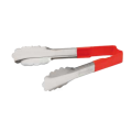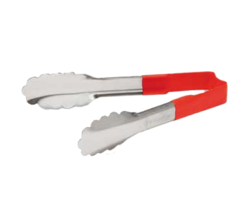 Utility Tongs, one-piece, 6" (24.1 cm), scalloped teeth, springless design, red ergonomic antimicrobial Kool-Touch® handle (heat resistant to 225°F (107.2°C), heat resistant to 180° F (82.1 C), fully functional to 350° F (176.6 C), dishwasher safe, stainless steel, NSF, Made in USA, Jacob's Pride® Collection, Limited Lifetime Warranty (Refer to vollrathfoodservice.com for full warranty policy)