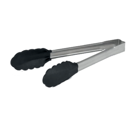 Utility Tongs, one-piece, 9-1/2" long, heavy gauge stainless, high temperature black nylon ends (heat resistant up to 450°F (232°C)), plain handle, dishwasher safe, Made in USA, Made in USA, Jacob's Pride® Collection, Limited Lifetime Warranty (Refer to vollrathfoodservice.com for full warranty policy)