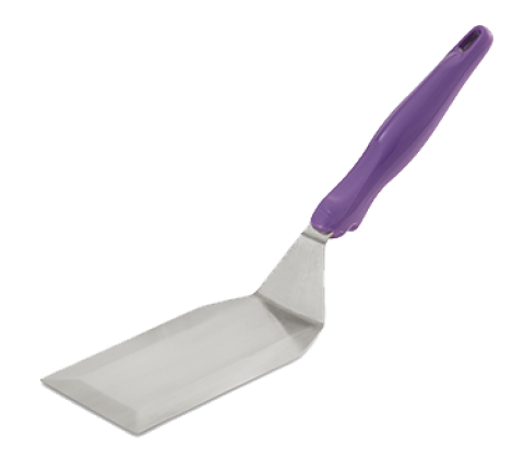 Heavy-Duty stainless Steel Turner with Ergo Grip® purple handle, solid, beveled, ergonomic high-temperature patented nylon handle, heat resistant to 450°, heavy gauge stainless blade & shaft, blade dimensions 6"L x 3"W, 13-1/2" overall length, imported, Jacob's Pride® Collection, Limited Lifetime Warranty (Refer to vollrathfoodservice.com for full warranty policy)