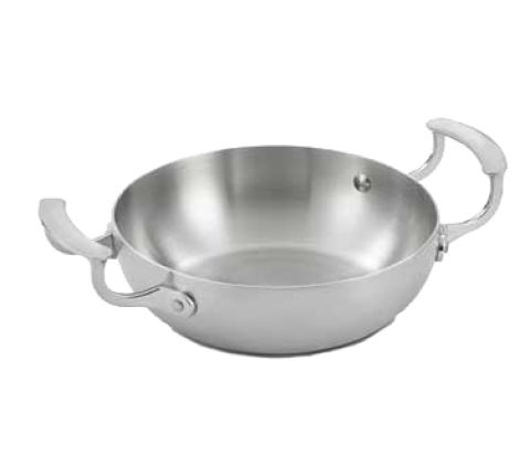 Miramar™ Display Cookware French Omelet Pan, 1-3/4 quart, 8" dia., 2-3/8"H, 3-ply construction, 18-8 stainless interior, 18-0 stainless exterior, 3004 aluminum core bottom & side walls, satin finish interior & exterior with mirror finish welded handles, for use with gas, electric or induction ranges, NSF, imported, Jacob's Pride® Collection, Limited Lifetime Warranty (cover sold separately) (Refer to vollrathfoodservice.com for full warranty policy)
