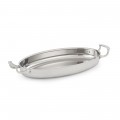 Miramar™ Display Cookware Oval Au Gratin, 3-3/4 quart, 16"W x 9"D x 2"H, 3-ply construction, 18-8 stainless interior, 18-0 stainless exterior, 3004 aluminum core bottom & side walls, satin finish interior & exterior with mirror finish welded handles, for use with gas, electric or induction ranges, NSF, imported, Jacob's Pride® Collection, Limited Lifetime (Refer to vollrathfoodservice.com for full warranty policy)