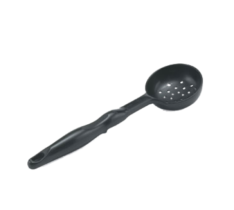 Nylon Round Perforated Spoodle®, black, 3 oz., 12-1/8" length, 2-13/16" bowl diameter, high temperature nylon heat resistant to 475°F (246°C), ergonomic handle, one-piece construction, built-in stopper, textured surface, capacity stamped on utensil, NSF, Made in USA (Refer to vollrathfoodservice.com for full warranty policy)