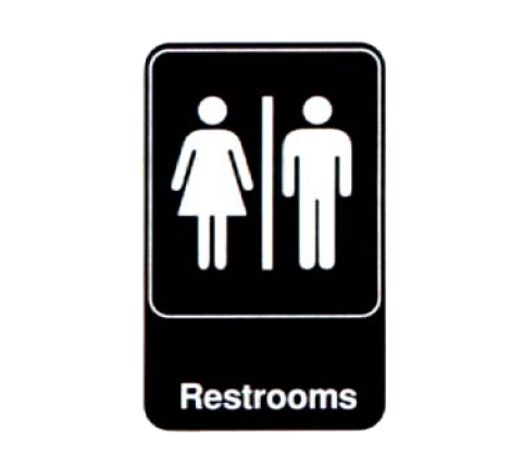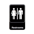 Restrooms Sign, 6" x 9", white on black, Made in USA (Refer to vollrathfoodservice.com for full warranty policy)