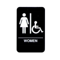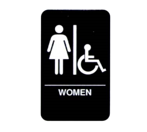Women/Accessible Sign, Braille, 6" x 9", white on black, Made in USA (Refer to vollrathfoodservice.com for full warranty policy)