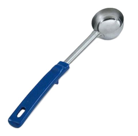 Spoodle®, 2 oz., solid, stainless color coded with blue Grip 'N Serv® plastic handle, equipped with all-natural antimicrobial, 12-1/2" overall lentgh, Made in USA (Refer to vollrathfoodservice.com for full warranty policy)