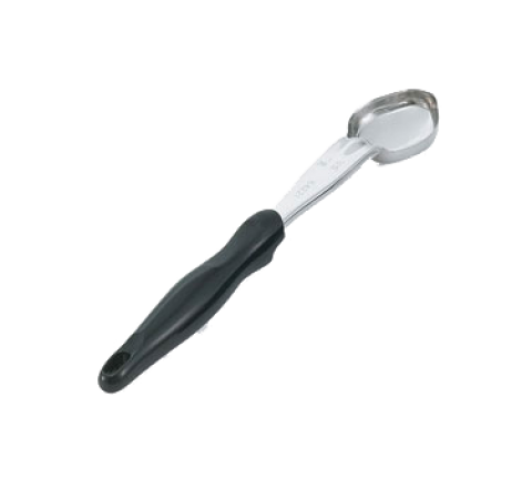 Spoodle®, 1-piece heavy duty, solid oval bowl, handle coded black, equipped with all-natural antimicrobial, 1 oz. (29.6ML), 18/8 304 stainless steel, ergonomic design high temperature textured nylon handle heat resistant to 450°F (232°C), built-in stopper notch, capacity stamped on shaft, 12-1/2" overall L, 2-5/16"L bowl diameter, limited warranty, NSF, imported, Jacob's Pride® Collection, Limited Lifetime Warranty (Refer to vollrathfoodservice.com for full warranty policy)