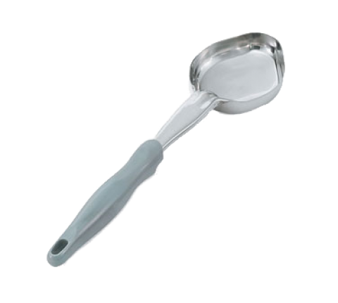 Spoodle®, 1-piece heavy duty, solid oval bowl, handle coded gray, equipped with all-natural antimicrobial, 4 oz. (118ML), 18/8 304 stainless steel, ergonomic design high temperature textured nylon handle heat resistant to 450°F (232°C), built-in stopper notch, capacity stamped on shaft, 13-13/16" overall L, 13-11/16"L bowl diameter, limited warranty, NSF, imported, Jacob's Pride® Collection, Limited Lifetime Warranty (Refer to vollrathfoodservice.com for full warranty policy)