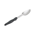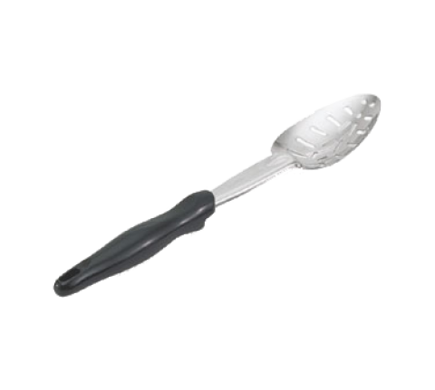 Ergo Grip™ Heavy Duty Spoon with black nylon ergonomic handle, equipped with all-natural antimicrobial, slotted, 13-13/16", heavy gauge 18/8 stainless steel, high temp, handle heat resistant to 450°F (232°C), textured surface handle with built in stopper notch, lifetime warranty, imported NSF, Jacob's Pride® Collection, Limited Lifetime Warranty (Refer to vollrathfoodservice.com for full warranty policy)