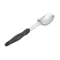 Ergo Grip™ Heavy Duty Spoon, with black nylon ergonomic handle, equipped with all-natural antimicrobial, 3-sided perforated, 13-5/16", heavy gauge 18/8 stainless steel, high temperature handle heat resistant to 450°F (232°C), textured surface handle with built in stopper notch, NSF, imported, Jacob's Pride® Collection, Limited Lifetime Warranty (Refer to vollrathfoodservice.com for full warranty policy)